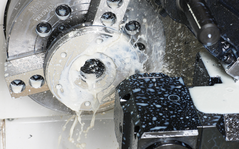 クーラント装置 切削油(クーラント)を機内に供給する装置で、主として切削油タンクとポンプで構成される。加工時に工具刃先に切削油を吹き付けることで冷却・切り屑の排出を行う。