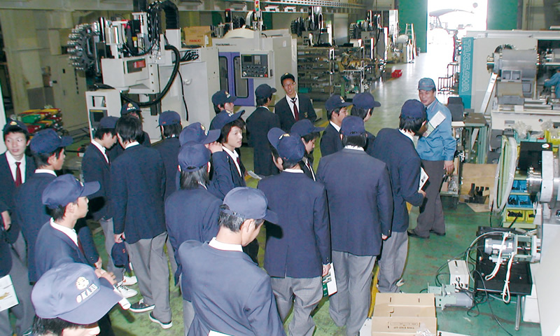 当社には、多くの学校の生徒さん達が工場見学に来られます。工業高校を中心に、県内はもとより九州や四国からも来て頂いています。