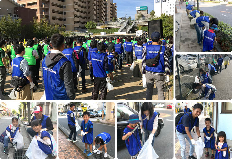2019年度の春と秋の清掃では、当社役員、従業員およびその家族を含め延べ100名以上が参加し、岡山駅周辺のごみ拾いを実施しました。