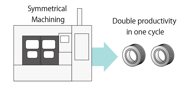 The cycle time is reduced by half by performing the same machining on both the left and right spindles.