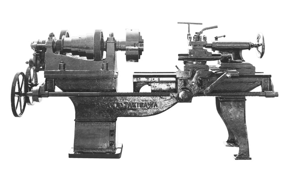 TAKISAWAブランドの礎を築いた段車旋盤です。ここから滝澤鉄工所は始まりました。 |