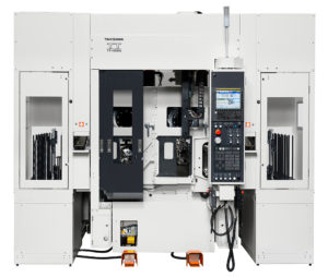 CNC旋盤を二つ組み合わせガントリーローダー標準搭載し、自動化に対応したTTシリーズ。自動車産業等の量産加工の効率アップに貢献しています。 |
