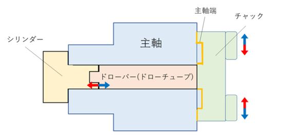 ドローバー(ドローチューブ)・・・チャックとシリンダーをつなぐ部品。