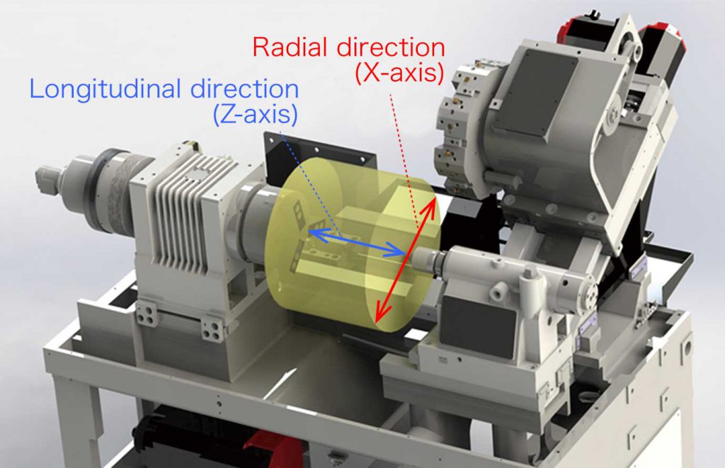 Z-axis is interpreted as an axis in the spindle longitudinal direction, and indicated by the blue line in Fig. 2, and