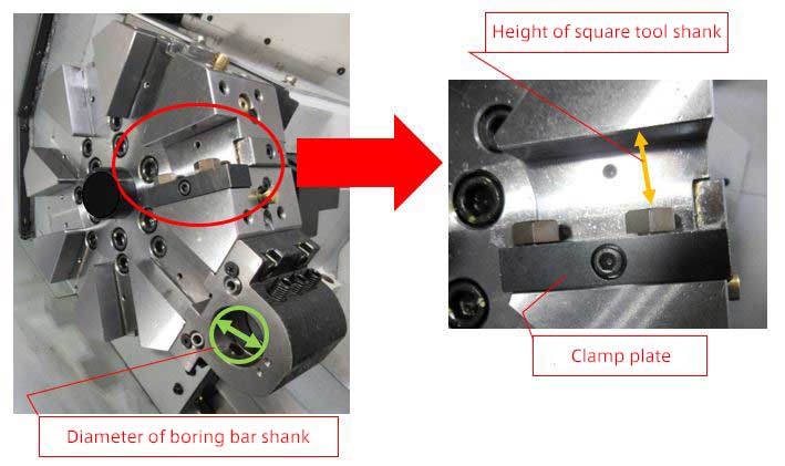 As illustrated above in Figure 4, these two areas provide space to attach tools (square tool and boring bar).
