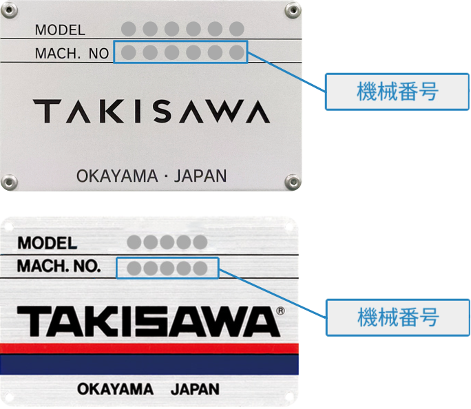 機械背面にTAKISAWAの銘板を張り付けていますので、